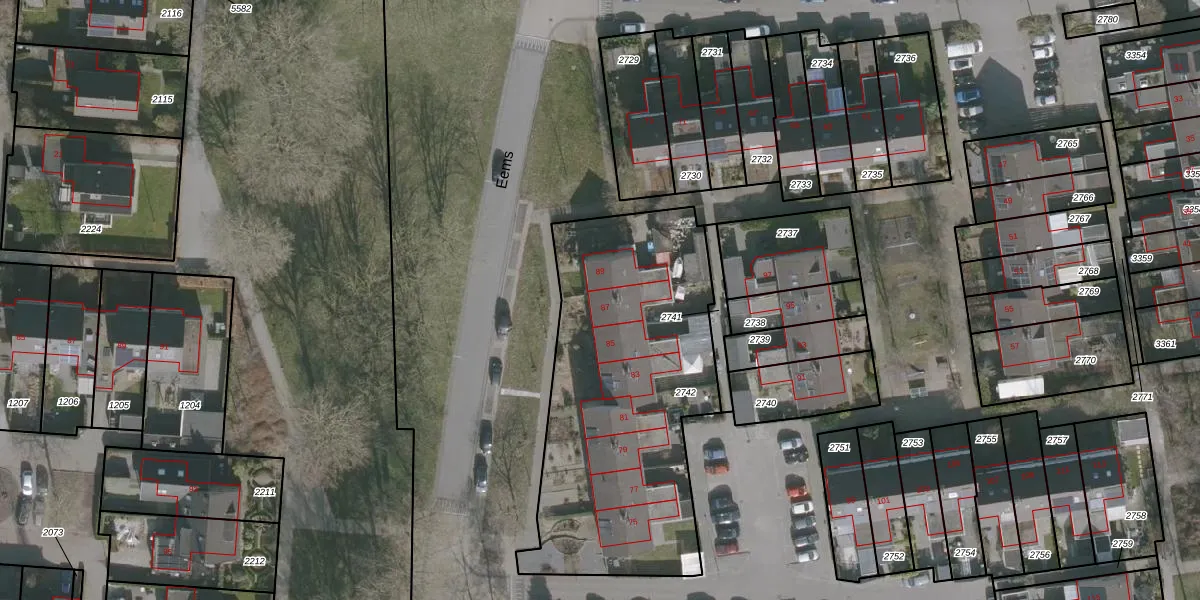 Het perceel waarop Eems 87 staat heeft een oppervlakte van 1550 m². Dit is een zeer groot perceel. De perceeloppervlakte wordt geregistreerd door het Kadaster. Gedetailleerde informatie over de maten van dit perceel kunt u vinden in het rapport Kadastrale kaart met maatvoering van Eems 87.