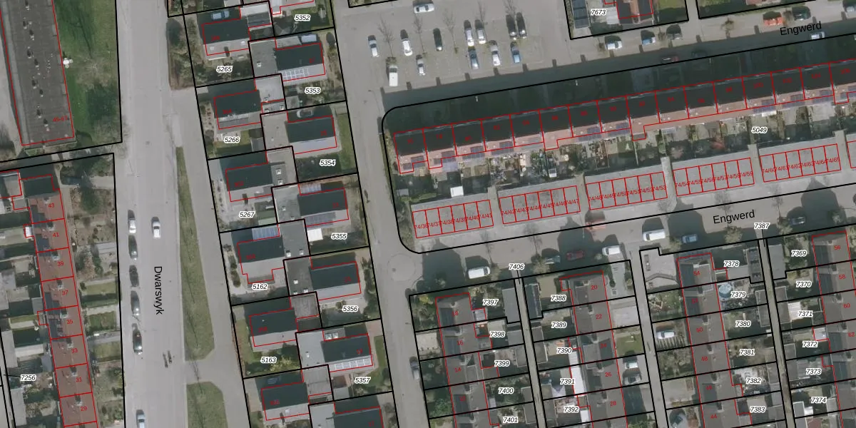 Engwerd 74-37 is gelegen op kadastraal perceel DTN02B5049. Deze kadastrale aanduiding is uniek en wordt gebruikt door het Kadaster om eigendomsrechten en andere zakelijke rechten vast te leggen. Het perceel maakt onderdeel uit van de kadastrale gemeente Drachten.