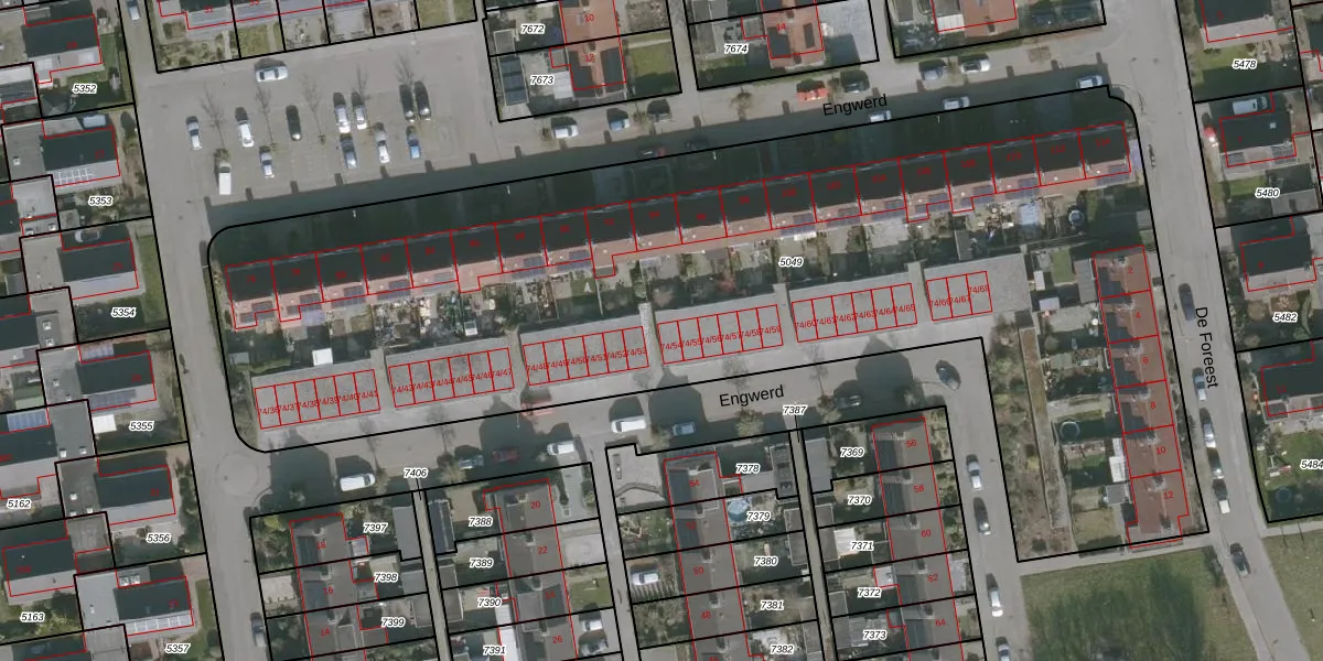 Engwerd 74-54 is gelegen op kadastraal perceel DTN02B5049. Deze kadastrale aanduiding is uniek en wordt gebruikt door het Kadaster om eigendomsrechten en andere zakelijke rechten vast te leggen. Het perceel maakt onderdeel uit van de kadastrale gemeente Drachten.