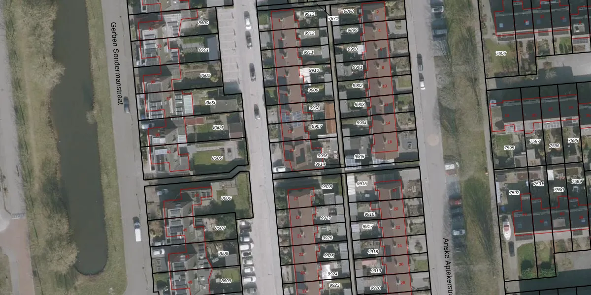Gebruik de zoekbalk of klik op een perceel voor informatie over de adressen binnen dit perceel.