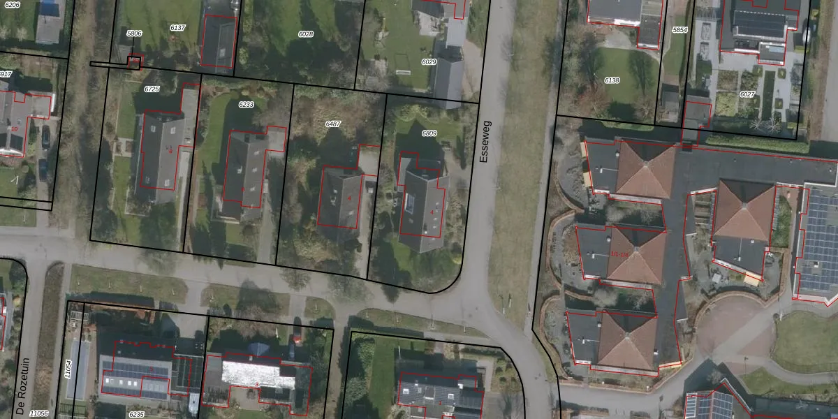 Het perceel waarop Esseweg 4 staat heeft een oppervlakte van 1018 m². Dit is een zeer groot perceel. De perceeloppervlakte wordt geregistreerd door het Kadaster. Gedetailleerde informatie over de maten van dit perceel kunt u vinden in het rapport Kadastrale kaart met maatvoering van Esseweg 4.