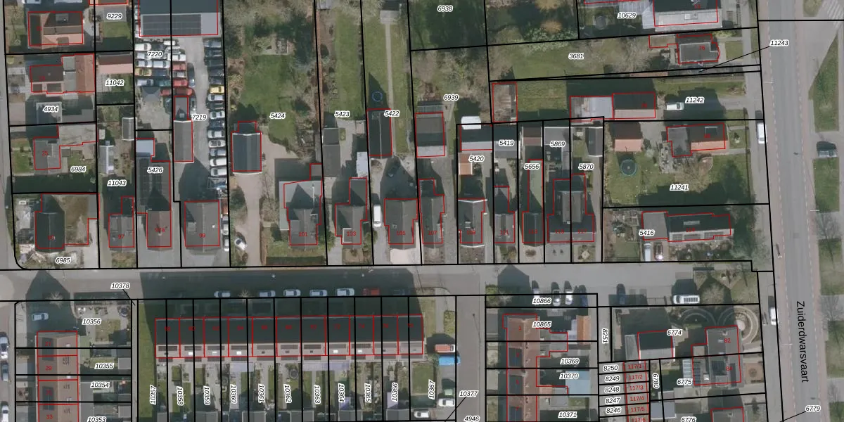Gebruik de zoekbalk of klik op een perceel voor informatie over de adressen binnen dit perceel.