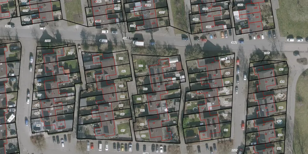 Gebruik de zoekbalk of klik op een perceel voor informatie over de adressen binnen dit perceel.