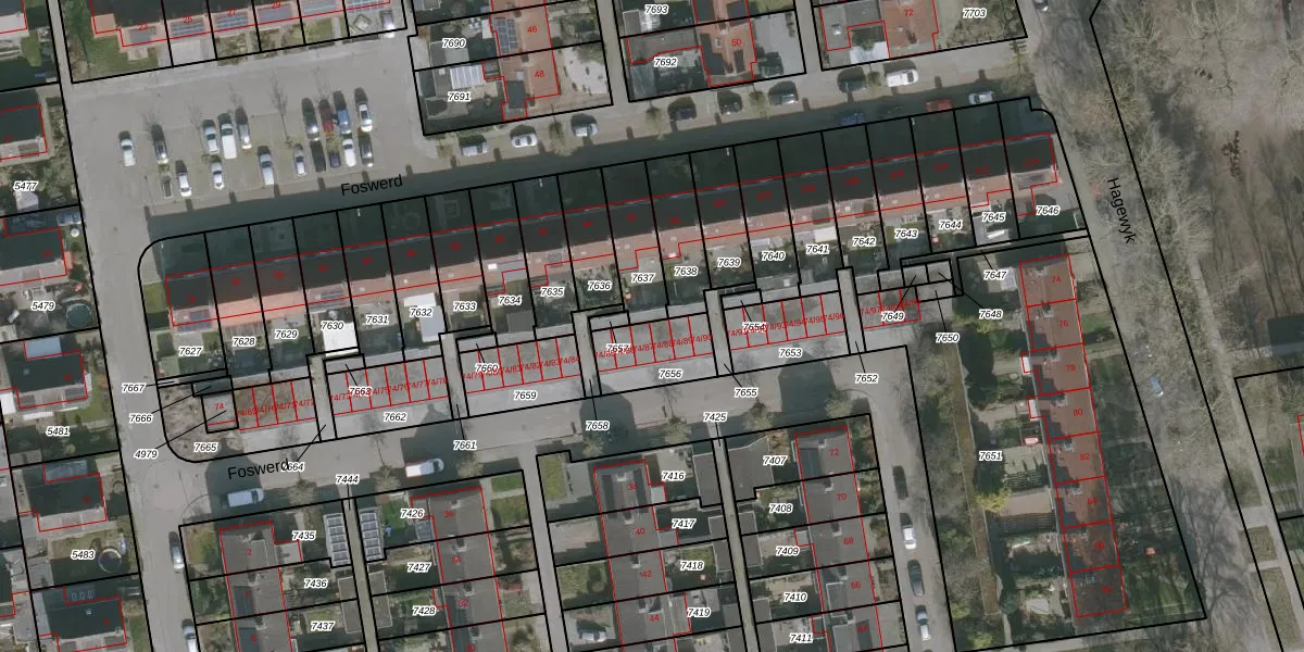Het perceel waarop Foswerd 74-88 staat heeft een oppervlakte van 181 m². Dit is een middelgroot perceel. De perceeloppervlakte wordt geregistreerd door het Kadaster. Gedetailleerde informatie over de maten van dit perceel kunt u vinden in het rapport Kadastrale kaart met maatvoering van Foswerd 74-88.