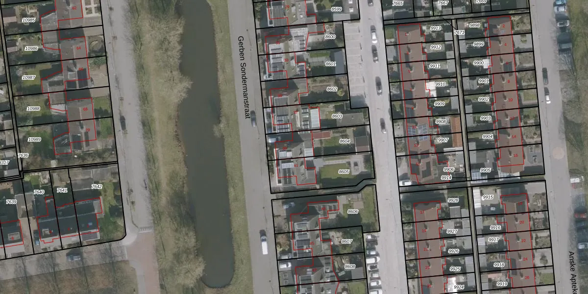 Het perceel waarop Gerben Sondermanstraat 39 staat heeft een oppervlakte van 322 m². Dit is een groot perceel. De perceeloppervlakte wordt geregistreerd door het Kadaster. Gedetailleerde informatie over de maten van dit perceel kunt u vinden in het rapport Kadastrale kaart met maatvoering van Gerben Sondermanstraat 39.