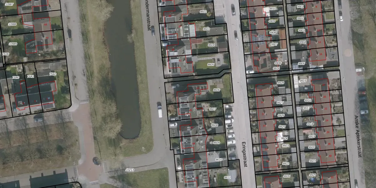 Het adres ligt op het perceel DTN02-C-8606, dat zich in de kadastrale gemeente Drachten bevindt. De gemiddelde perceelgrootte in Drachten is 1805,26 m². Dit perceel is kleiner: de perceeloppervlakte bedraagt 438 m². Het grootste perceel in de kadastrale gemeente is 42,8 ha. Het kleinste perceel heeft een oppervlakte van 0 m². Er zijn geen andere adressen aanwezig op het perceel. De laatste wijziging in het de Basisregistratie Kadaster (BRK) was op 10-11-2003.