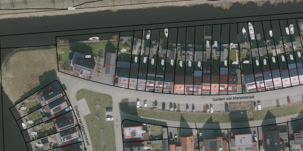 Gerben van Manenstraat 102 is gelegen op kadastraal perceel DTN02D4503. Deze kadastrale aanduiding is uniek en wordt gebruikt door het Kadaster om eigendomsrechten en andere zakelijke rechten vast te leggen. Het perceel maakt onderdeel uit van de kadastrale gemeente Drachten.