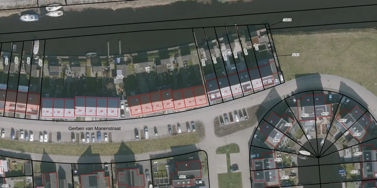 Het perceel waarop Gerben van Manenstraat 16 staat heeft een oppervlakte van 3809 m². Dit is een zeer groot perceel. De perceeloppervlakte wordt geregistreerd door het Kadaster. Gedetailleerde informatie over de maten van dit perceel kunt u vinden in het rapport Kadastrale kaart met maatvoering van Gerben van Manenstraat 16.