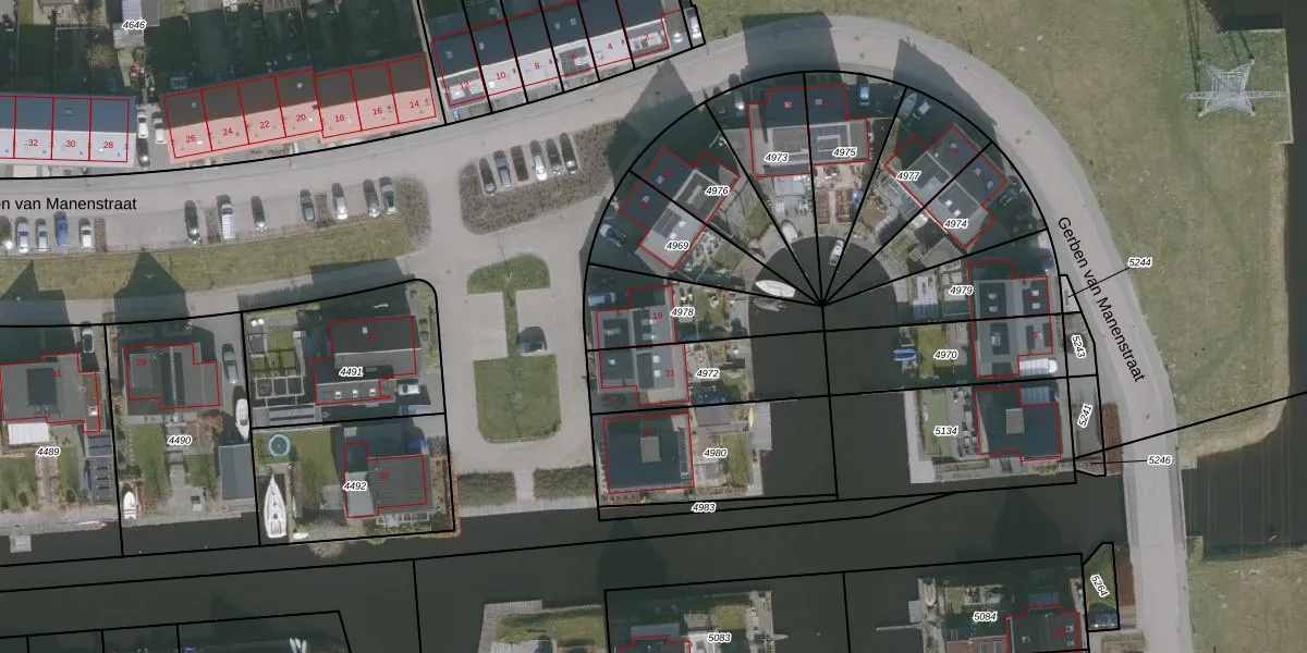 Gerben van Manenstraat 19 is gelegen op kadastraal perceel DTN02D4978. Deze kadastrale aanduiding is uniek en wordt gebruikt door het Kadaster om eigendomsrechten en andere zakelijke rechten vast te leggen. Het perceel maakt onderdeel uit van de kadastrale gemeente Drachten.