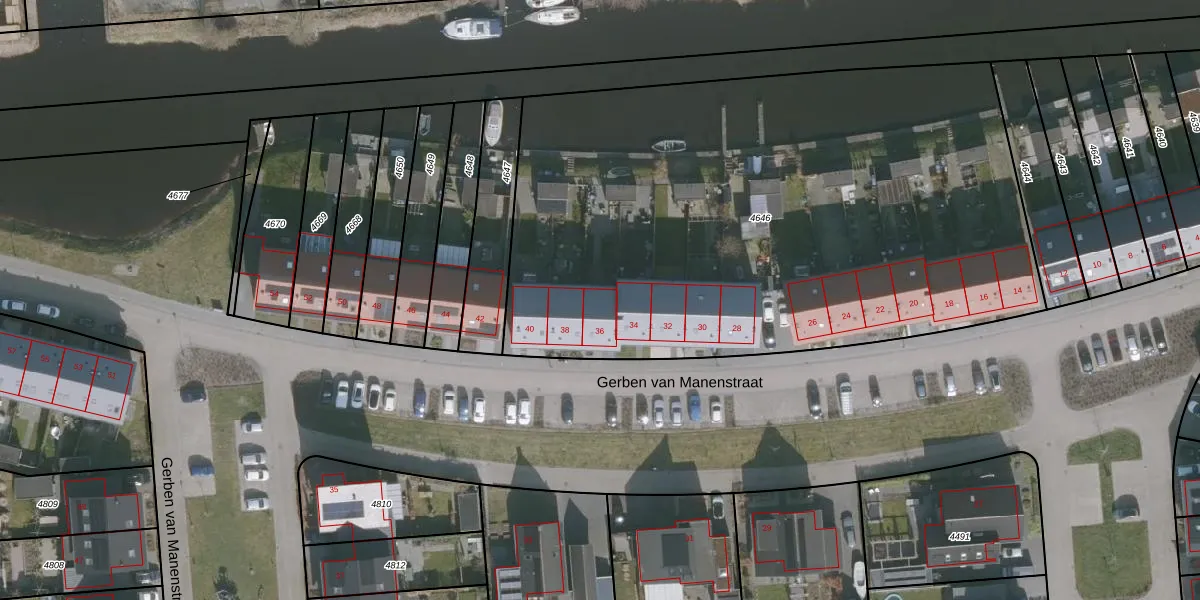 Gerben van Manenstraat 36 is gelegen op kadastraal perceel DTN02D4646. Deze kadastrale aanduiding is uniek en wordt gebruikt door het Kadaster om eigendomsrechten en andere zakelijke rechten vast te leggen. Het perceel maakt onderdeel uit van de kadastrale gemeente Drachten.