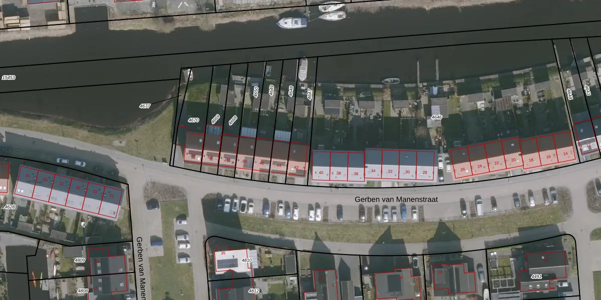 Gerben van Manenstraat 42 is gelegen op kadastraal perceel DTN02D4647. Deze kadastrale aanduiding is uniek en wordt gebruikt door het Kadaster om eigendomsrechten en andere zakelijke rechten vast te leggen. Het perceel maakt onderdeel uit van de kadastrale gemeente Drachten.
