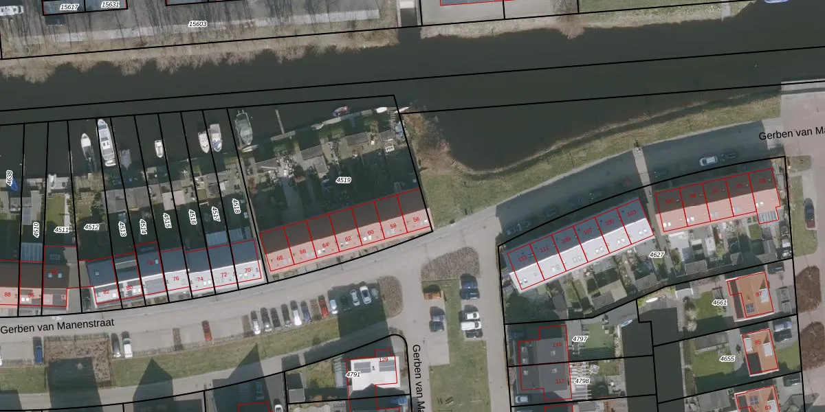 Gerben van Manenstraat 56 is gelegen op kadastraal perceel DTN02D4519. Deze kadastrale aanduiding is uniek en wordt gebruikt door het Kadaster om eigendomsrechten en andere zakelijke rechten vast te leggen. Het perceel maakt onderdeel uit van de kadastrale gemeente Drachten.