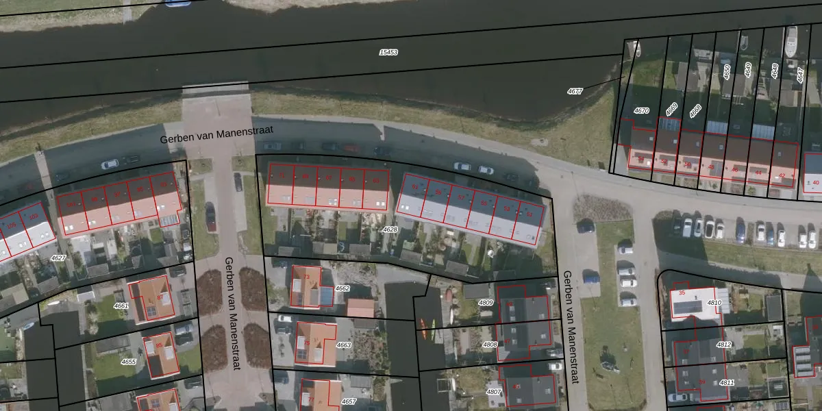 Het perceel waarop Gerben van Manenstraat 61 staat heeft een oppervlakte van 1762 m². Dit is een zeer groot perceel. De perceeloppervlakte wordt geregistreerd door het Kadaster. Gedetailleerde informatie over de maten van dit perceel kunt u vinden in het rapport Kadastrale kaart met maatvoering van Gerben van Manenstraat 61.