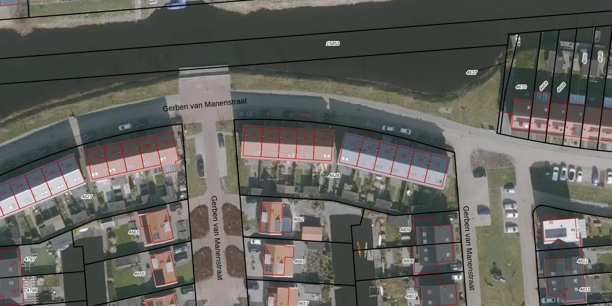 Het perceel waarop Gerben van Manenstraat 65 staat heeft een oppervlakte van 1762 m². Dit is een zeer groot perceel. De perceeloppervlakte wordt geregistreerd door het Kadaster. Gedetailleerde informatie over de maten van dit perceel kunt u vinden in het rapport Kadastrale kaart met maatvoering van Gerben van Manenstraat 65.