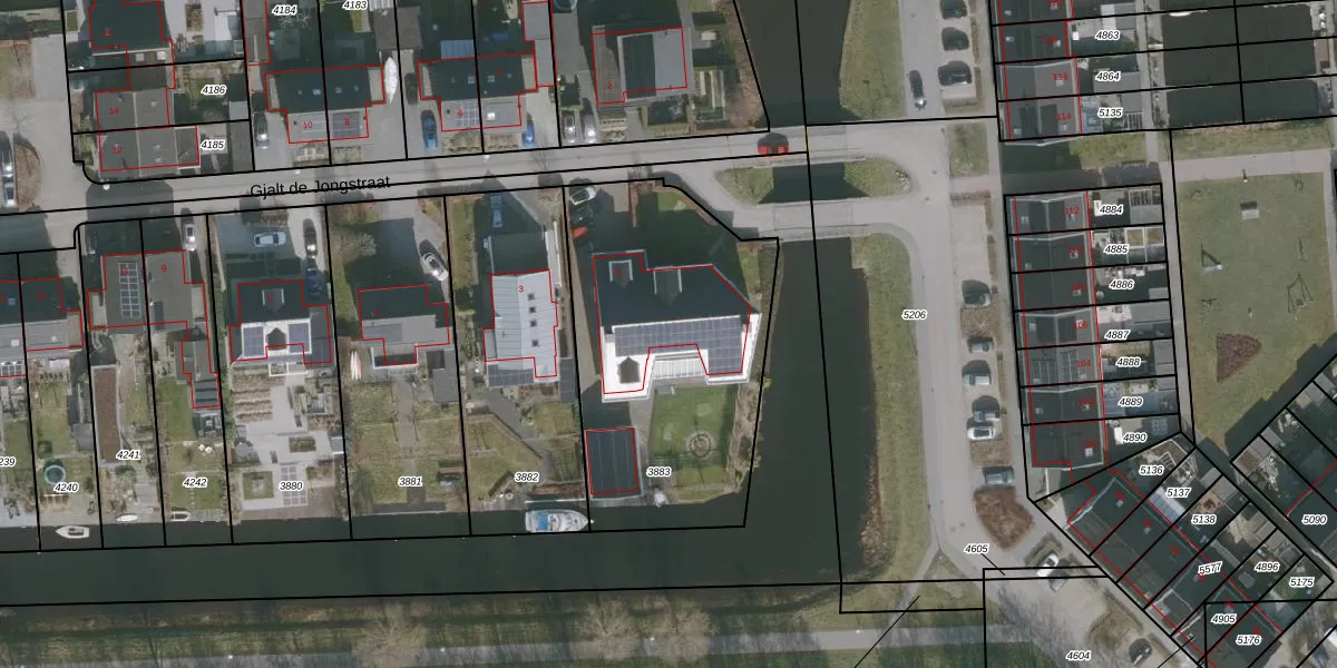 Gjalt de Jongstraat 1 is gelegen op kadastraal perceel DTN02D3883. Deze kadastrale aanduiding is uniek en wordt gebruikt door het Kadaster om eigendomsrechten en andere zakelijke rechten vast te leggen. Het perceel maakt onderdeel uit van de kadastrale gemeente Drachten.