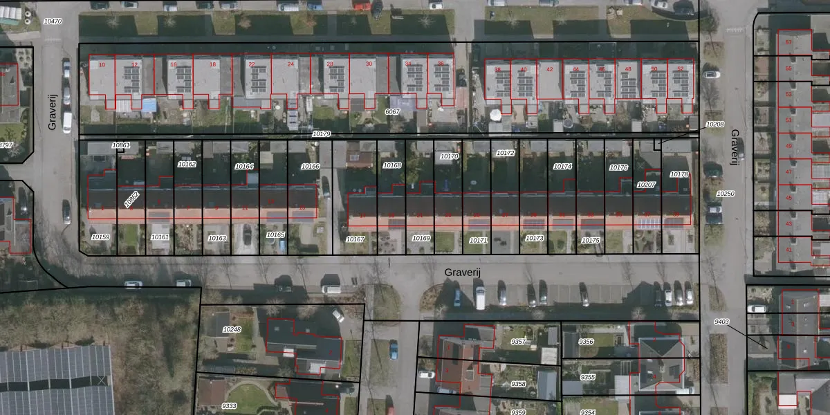 Het perceel waarop Graverij 21 staat heeft een oppervlakte van 191 m². Dit is een middelgroot perceel. De perceeloppervlakte wordt geregistreerd door het Kadaster. Gedetailleerde informatie over de maten van dit perceel kunt u vinden in het rapport Kadastrale kaart met maatvoering van Graverij 21.