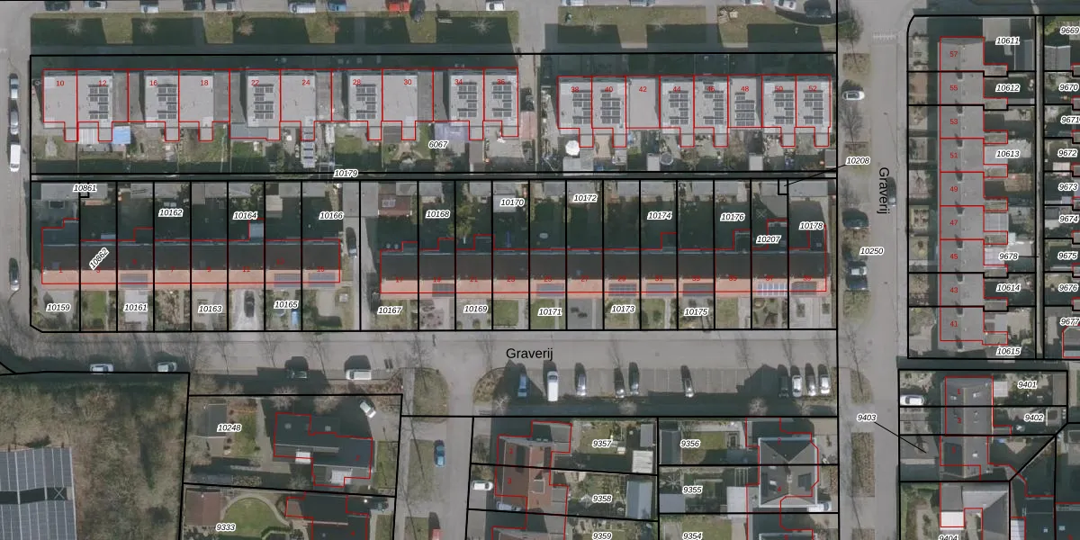 Het perceel waarop Graverij 25 staat heeft een oppervlakte van 191 m². Dit is een middelgroot perceel. De perceeloppervlakte wordt geregistreerd door het Kadaster. Gedetailleerde informatie over de maten van dit perceel kunt u vinden in het rapport Kadastrale kaart met maatvoering van Graverij 25.