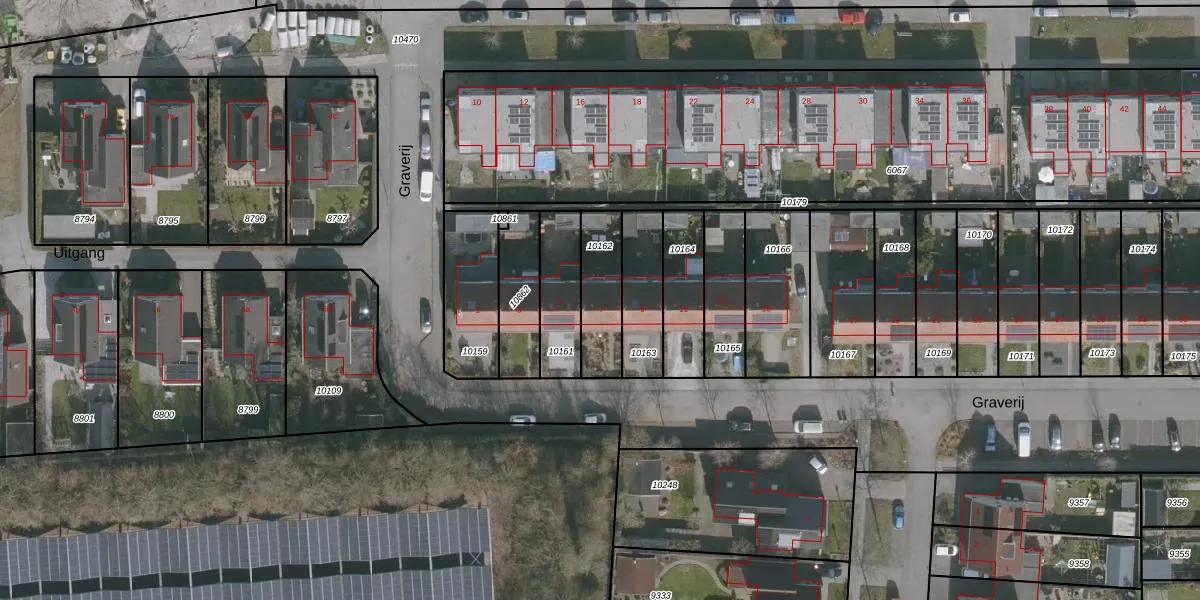 Het perceel waarop Graverij 7 staat heeft een oppervlakte van 192 m². Dit is een middelgroot perceel. De perceeloppervlakte wordt geregistreerd door het Kadaster. Gedetailleerde informatie over de maten van dit perceel kunt u vinden in het rapport Kadastrale kaart met maatvoering van Graverij 7.