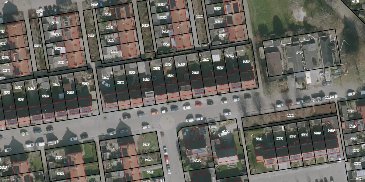 Gebruik de zoekbalk of klik op een perceel voor informatie over de adressen binnen dit perceel.