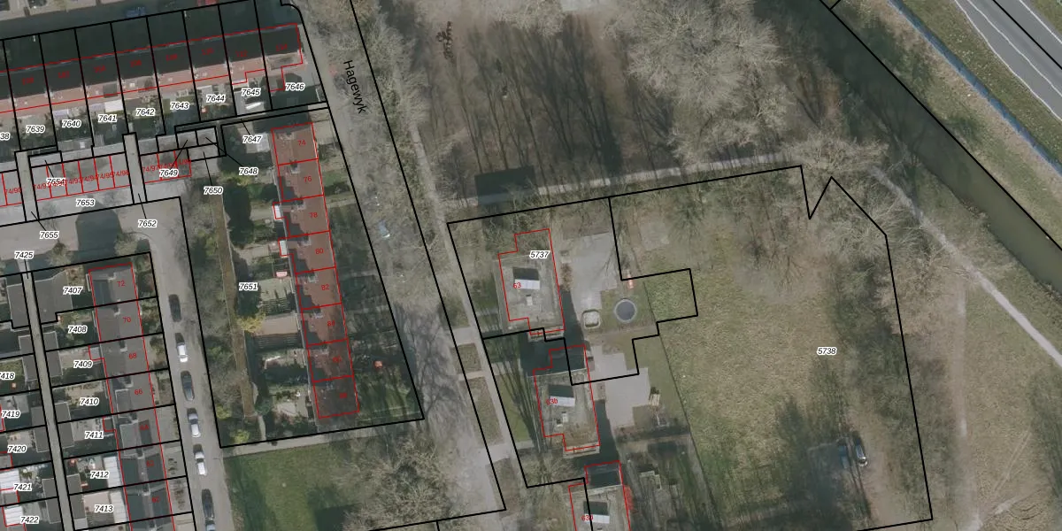 Het perceel waarop Hagewyk 63 staat heeft een oppervlakte van 941 m². Dit is een groot perceel. De perceeloppervlakte wordt geregistreerd door het Kadaster. Gedetailleerde informatie over de maten van dit perceel kunt u vinden in het rapport Kadastrale kaart met maatvoering van Hagewyk 63.