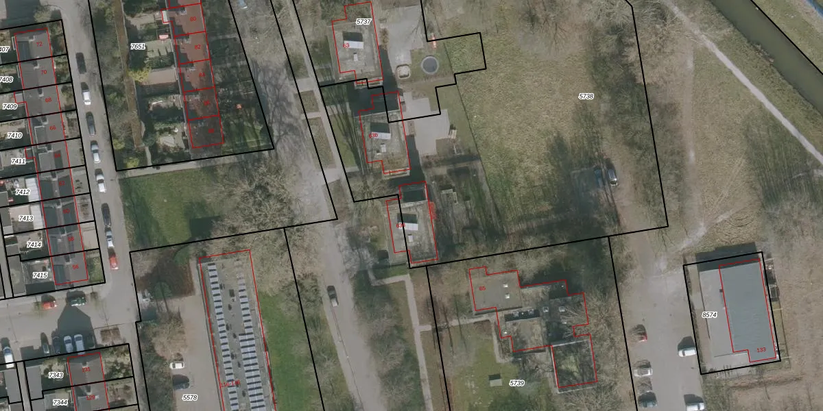 Het adres ligt op het perceel DTN02-B-5738, dat zich in de kadastrale gemeente Drachten bevindt. De oppervlakte van het perceel is 4115 m². Dat is groter dan gemiddeld in Drachten, waar de gemiddelde perceeloppervlakte op 1805,26 m² ligt. De grootste perceeloppervlakte in de kadastrale gemeente is 42,8 ha. De kleinste oppervlakte bedraagt 0 m². Op het perceel zijn 4 adressen aanwezig. In de Basisregistratie Kadaster (BRK) werden de grenzen van het perceel geregistreerd op 27-06-2012.