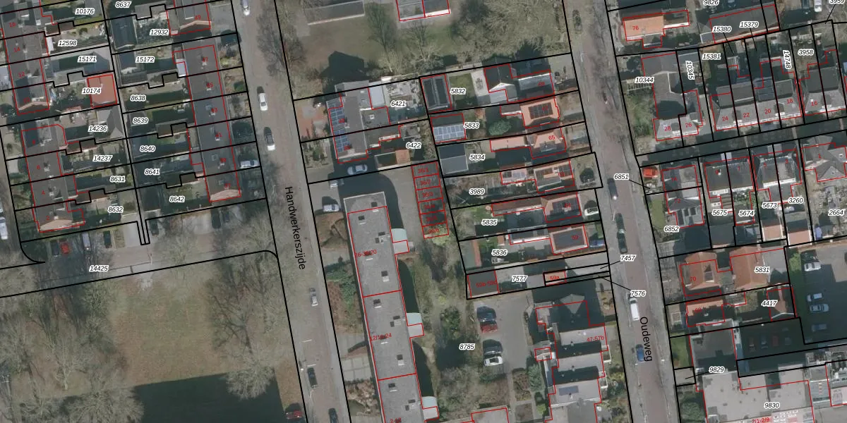 Het perceel waarop Handwerkerszijde 36-4 staat heeft een oppervlakte van 3894 m². Dit is een zeer groot perceel. De perceeloppervlakte wordt geregistreerd door het Kadaster. Gedetailleerde informatie over de maten van dit perceel kunt u vinden in het rapport Kadastrale kaart met maatvoering van Handwerkerszijde 36-4.