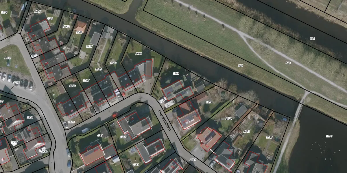 Het perceel waarop Hanebalken 209 staat heeft een oppervlakte van 584 m². Dit is een groot perceel. De perceeloppervlakte wordt geregistreerd door het Kadaster. Gedetailleerde informatie over de maten van dit perceel kunt u vinden in het rapport Kadastrale kaart met maatvoering van Hanebalken 209.