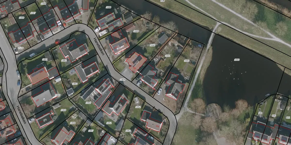 Het perceel waarop Hanebalken 215 staat heeft een oppervlakte van 665 m². Dit is een groot perceel. De perceeloppervlakte wordt geregistreerd door het Kadaster. Gedetailleerde informatie over de maten van dit perceel kunt u vinden in het rapport Kadastrale kaart met maatvoering van Hanebalken 215.