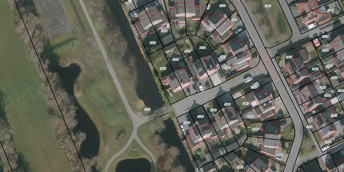 Hanebalken 65 is gelegen op kadastraal perceel BBG03E1835. Deze kadastrale aanduiding is uniek en wordt gebruikt door het Kadaster om eigendomsrechten en andere zakelijke rechten vast te leggen. Het perceel maakt onderdeel uit van de kadastrale gemeente Boornbergum.