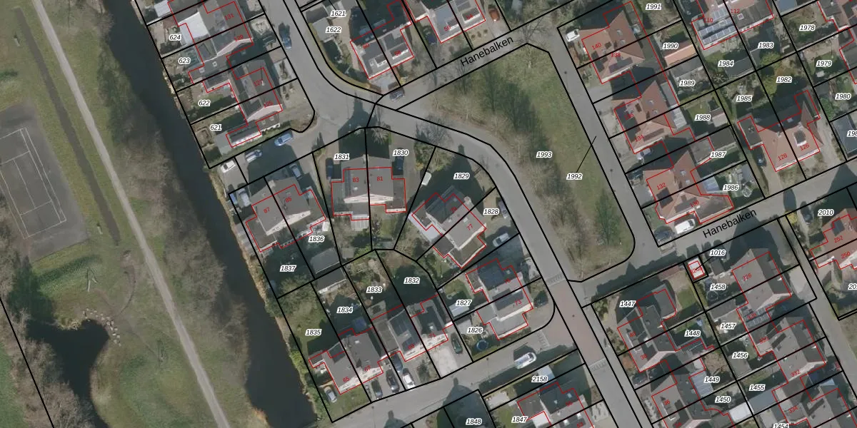 Het perceel waarop Hanebalken 79 staat heeft een oppervlakte van 310 m². Dit is een groot perceel. De perceeloppervlakte wordt geregistreerd door het Kadaster. Gedetailleerde informatie over de maten van dit perceel kunt u vinden in het rapport Kadastrale kaart met maatvoering van Hanebalken 79.
