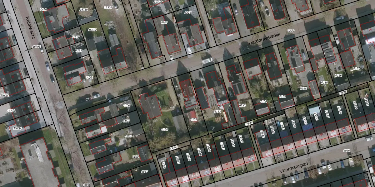 Harddraversdijk 6 is gelegen op kadastraal perceel DTN02A6151. Deze kadastrale aanduiding is uniek en wordt gebruikt door het Kadaster om eigendomsrechten en andere zakelijke rechten vast te leggen. Het perceel maakt onderdeel uit van de kadastrale gemeente Drachten.