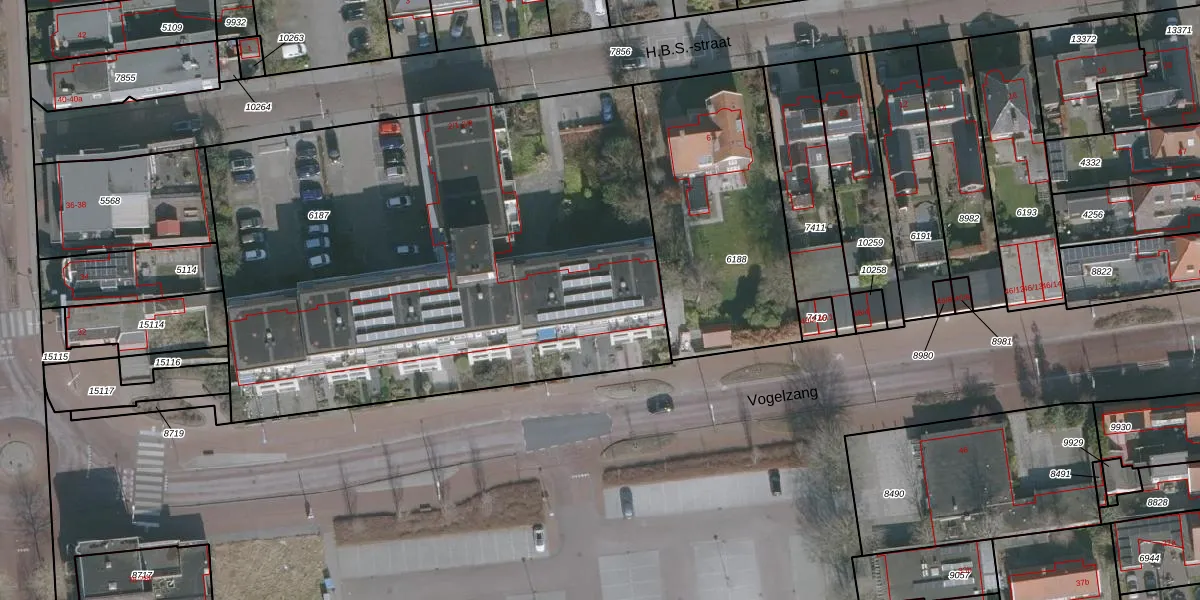 Het perceel waarop H.B.S.-straat 2-47 staat heeft een oppervlakte van 3365 m². Dit is een zeer groot perceel. De perceeloppervlakte wordt geregistreerd door het Kadaster. Gedetailleerde informatie over de maten van dit perceel kunt u vinden in het rapport Kadastrale kaart met maatvoering van H.B.S.-straat 2-47.