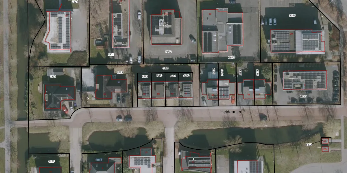 Heideanjer 8-a is gelegen op kadastraal perceel DTN02B8381. Deze kadastrale aanduiding is uniek en wordt gebruikt door het Kadaster om eigendomsrechten en andere zakelijke rechten vast te leggen. Het perceel maakt onderdeel uit van de kadastrale gemeente Drachten.