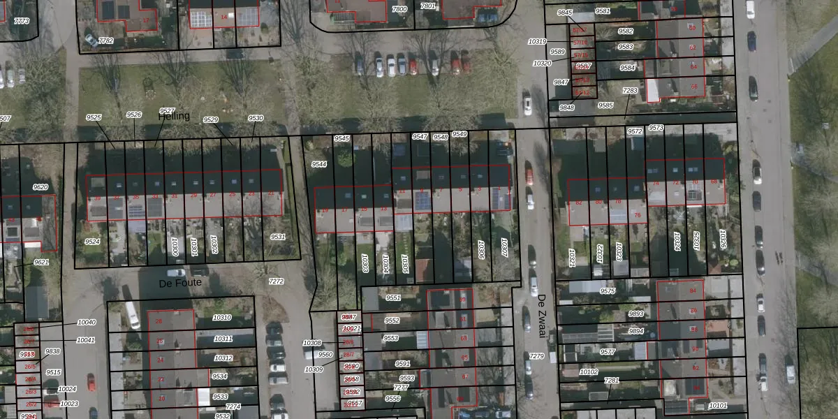 Gebruik de zoekbalk of klik op een perceel voor informatie over de adressen binnen dit perceel.