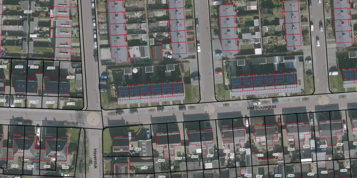 Het perceel waarop Het Blauwgras 55 staat heeft een oppervlakte van 6898 m². Dit is een zeer groot perceel. De perceeloppervlakte wordt geregistreerd door het Kadaster. Gedetailleerde informatie over de maten van dit perceel kunt u vinden in het rapport Kadastrale kaart met maatvoering van Het Blauwgras 55.