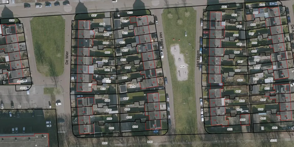 Het perceel waarop Het Heem 14 staat heeft een oppervlakte van 192 m². Dit is een middelgroot perceel. De perceeloppervlakte wordt geregistreerd door het Kadaster. Gedetailleerde informatie over de maten van dit perceel kunt u vinden in het rapport Kadastrale kaart met maatvoering van Het Heem 14.