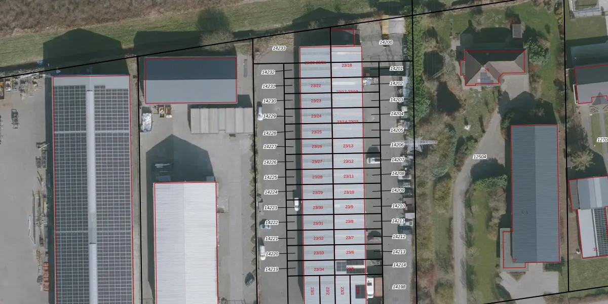 Het adres is gelegen op perceel 14227 in de sectie A en de kadastrale gemeente Drachten. De kadastrale aanduiding is aldus DTN02-A-14227. Het perceel is kleiner dan gemiddeld in Drachten. Het perceel is 78 m² groot, terwijl het gemiddelde ligt op 1805,26 m². Het grootste perceel in de kadastrale gemeente is 42,8 ha. Het kleinste perceel heeft een oppervlakte van 0 m². Op het perceel bevinden zich geen andere adressen. De huidige grenzen van het perceel zijn digitaal in de Basisregistratie Kadaster (BRK) geregistreerd op 23-01-2007.