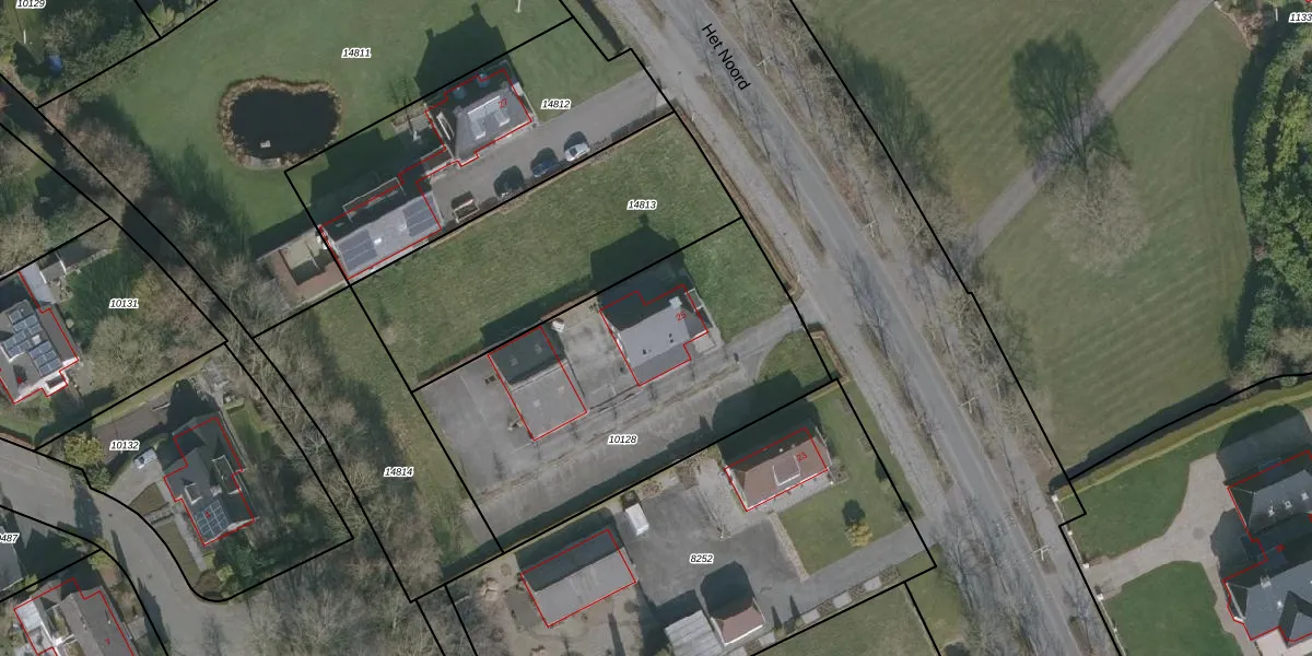 Het perceel waarop Het Noord 25 staat heeft een oppervlakte van 1600 m². Dit is een zeer groot perceel. De perceeloppervlakte wordt geregistreerd door het Kadaster. Gedetailleerde informatie over de maten van dit perceel kunt u vinden in het rapport Kadastrale kaart met maatvoering van Het Noord 25.