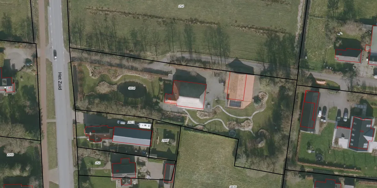 Het perceel waarop Het Zuid 19 staat heeft een oppervlakte van 4289 m². Dit is een zeer groot perceel. De perceeloppervlakte wordt geregistreerd door het Kadaster. Gedetailleerde informatie over de maten van dit perceel kunt u vinden in het rapport Kadastrale kaart met maatvoering van Het Zuid 19.