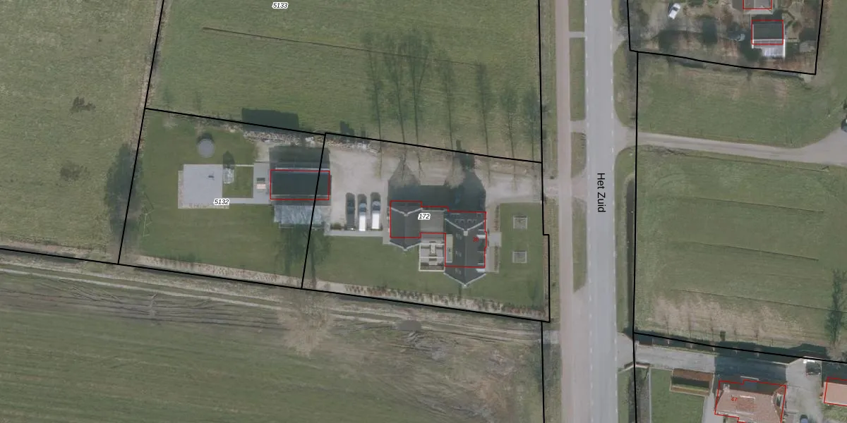 Het perceel waarop Het Zuid 30 staat heeft een oppervlakte van 2090 m². Dit is een zeer groot perceel. De perceeloppervlakte wordt geregistreerd door het Kadaster. Gedetailleerde informatie over de maten van dit perceel kunt u vinden in het rapport Kadastrale kaart met maatvoering van Het Zuid 30.