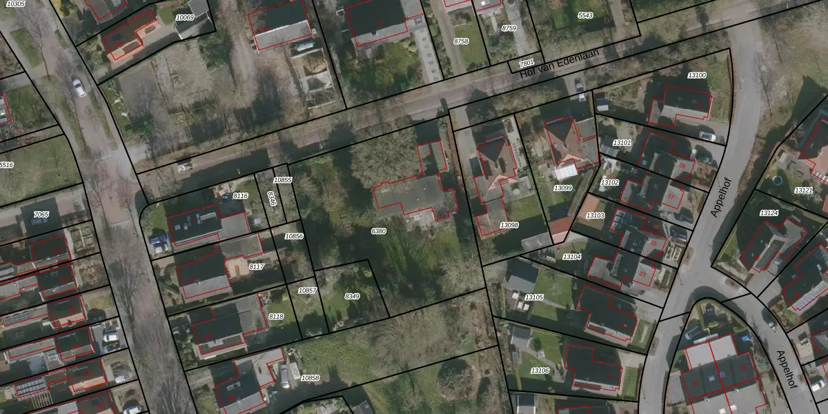 Hof van Edenlaan 5 is gelegen op kadastraal perceel DTN02A6380. Deze kadastrale aanduiding is uniek en wordt gebruikt door het Kadaster om eigendomsrechten en andere zakelijke rechten vast te leggen. Het perceel maakt onderdeel uit van de kadastrale gemeente Drachten.