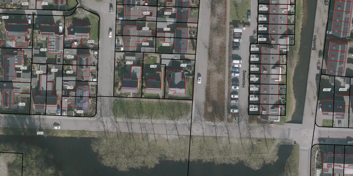 Hooiweg 28 is gelegen op kadastraal perceel DTN02C5237. Deze kadastrale aanduiding is uniek en wordt gebruikt door het Kadaster om eigendomsrechten en andere zakelijke rechten vast te leggen. Het perceel maakt onderdeel uit van de kadastrale gemeente Drachten.