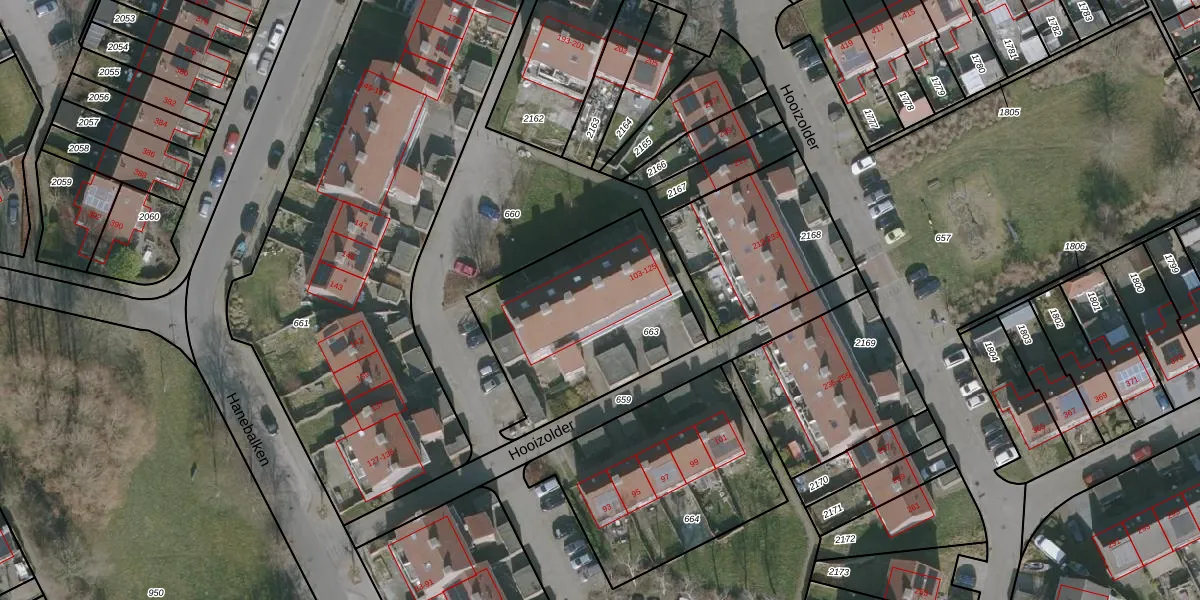 Het perceel waarop Hooizolder 113 staat heeft een oppervlakte van 830 m². Dit is een groot perceel. De perceeloppervlakte wordt geregistreerd door het Kadaster. Gedetailleerde informatie over de maten van dit perceel kunt u vinden in het rapport Kadastrale kaart met maatvoering van Hooizolder 113.