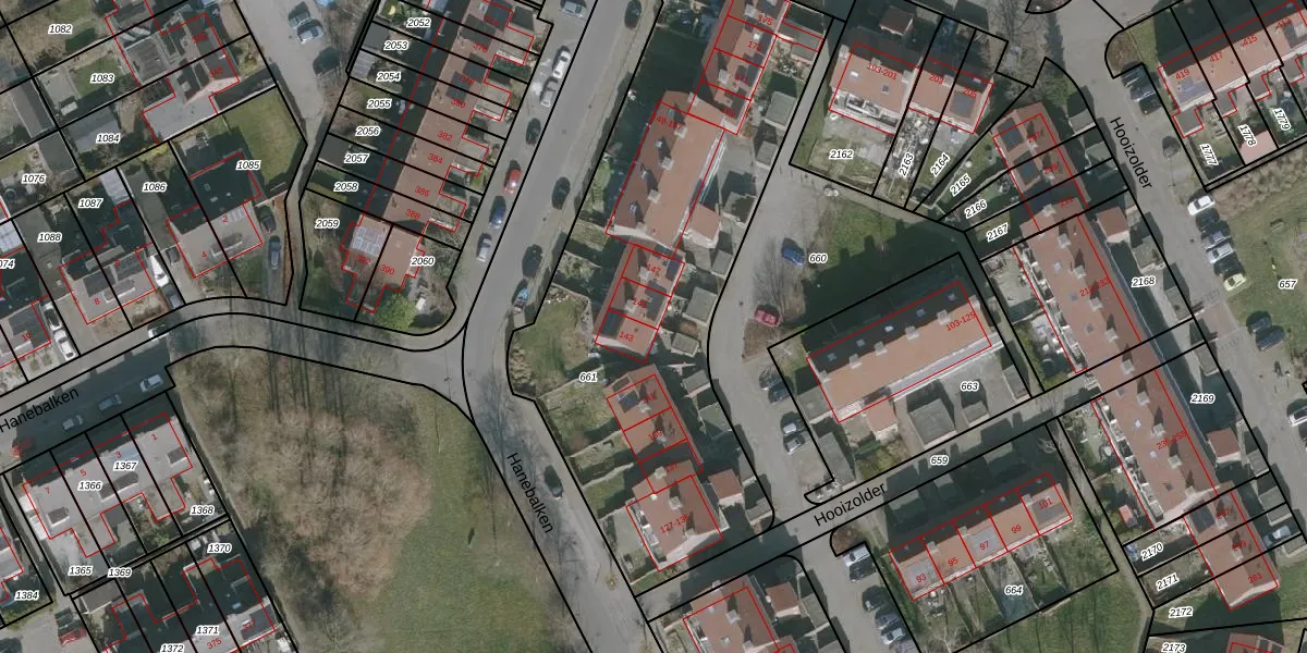 Het perceel waarop Hooizolder 145 staat heeft een oppervlakte van 2480 m². Dit is een zeer groot perceel. De perceeloppervlakte wordt geregistreerd door het Kadaster. Gedetailleerde informatie over de maten van dit perceel kunt u vinden in het rapport Kadastrale kaart met maatvoering van Hooizolder 145.
