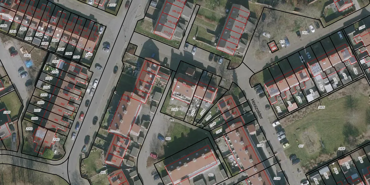 Het perceel waarop Hooizolder 195 staat heeft een oppervlakte van 402 m². Dit is een groot perceel. De perceeloppervlakte wordt geregistreerd door het Kadaster. Gedetailleerde informatie over de maten van dit perceel kunt u vinden in het rapport Kadastrale kaart met maatvoering van Hooizolder 195.