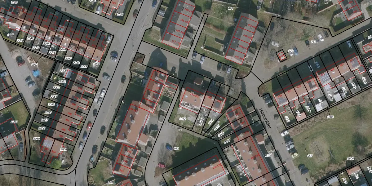 Het perceel waarop Hooizolder 199 staat heeft een oppervlakte van 402 m². Dit is een groot perceel. De perceeloppervlakte wordt geregistreerd door het Kadaster. Gedetailleerde informatie over de maten van dit perceel kunt u vinden in het rapport Kadastrale kaart met maatvoering van Hooizolder 199.