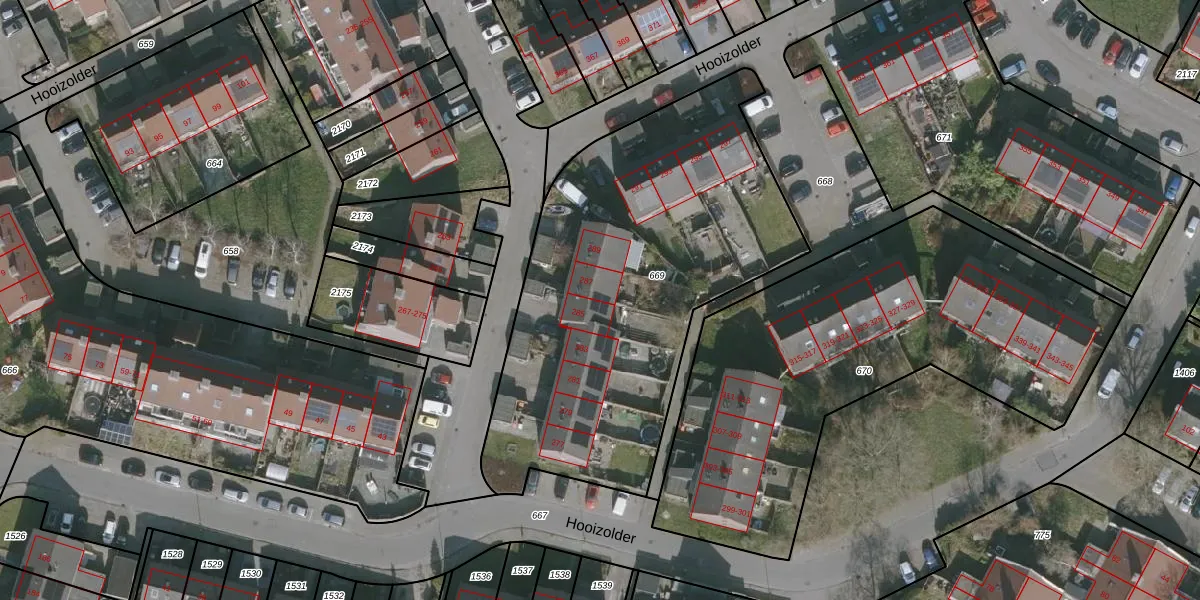 Het perceel waarop Hooizolder 287 staat heeft een oppervlakte van 2095 m². Dit is een zeer groot perceel. De perceeloppervlakte wordt geregistreerd door het Kadaster. Gedetailleerde informatie over de maten van dit perceel kunt u vinden in het rapport Kadastrale kaart met maatvoering van Hooizolder 287.
