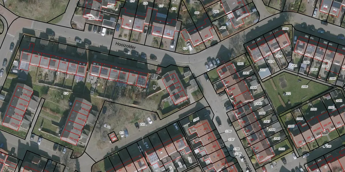 Het perceel waarop Hooizolder 459 staat heeft een oppervlakte van 4640 m². Dit is een zeer groot perceel. De perceeloppervlakte wordt geregistreerd door het Kadaster. Gedetailleerde informatie over de maten van dit perceel kunt u vinden in het rapport Kadastrale kaart met maatvoering van Hooizolder 459.
