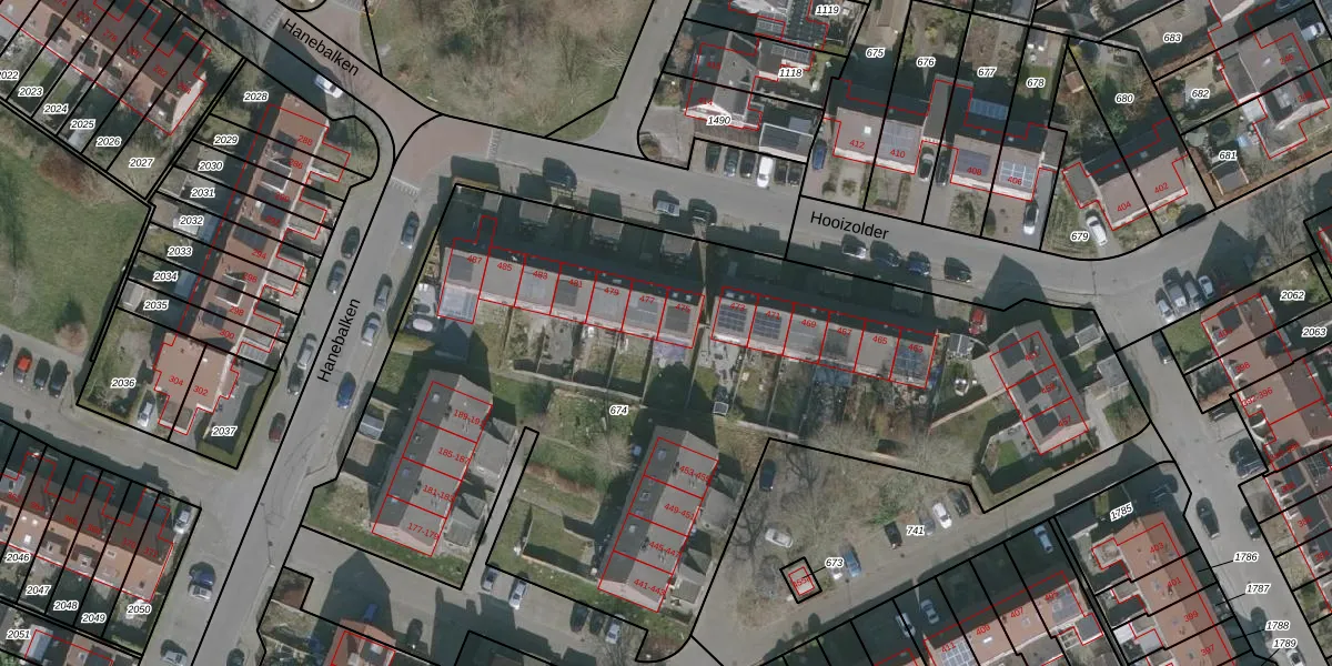 Het perceel waarop Hooizolder 475 staat heeft een oppervlakte van 4640 m². Dit is een zeer groot perceel. De perceeloppervlakte wordt geregistreerd door het Kadaster. Gedetailleerde informatie over de maten van dit perceel kunt u vinden in het rapport Kadastrale kaart met maatvoering van Hooizolder 475.