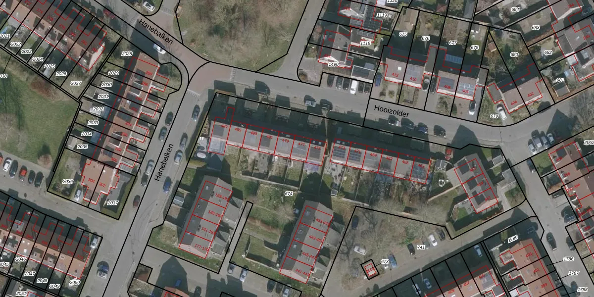 Het perceel waarop Hooizolder 477 staat heeft een oppervlakte van 4640 m². Dit is een zeer groot perceel. De perceeloppervlakte wordt geregistreerd door het Kadaster. Gedetailleerde informatie over de maten van dit perceel kunt u vinden in het rapport Kadastrale kaart met maatvoering van Hooizolder 477.
